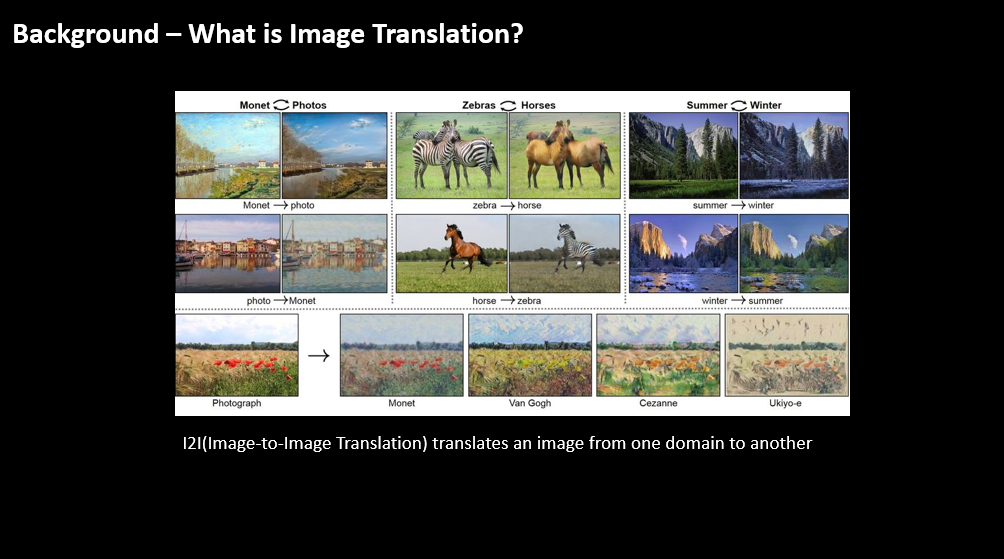 Image-to-Image Translation : 한 도메인의 이미지를 다른 도메인으로 변환하는 것.