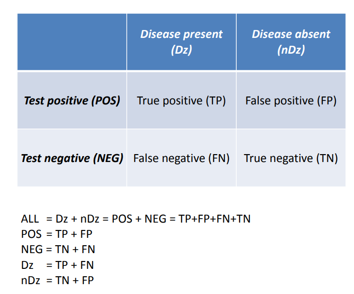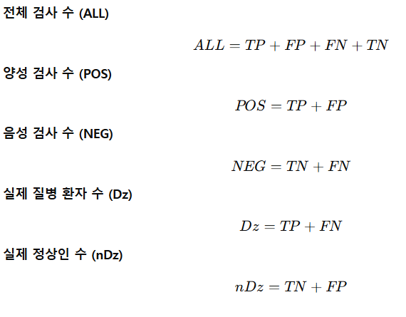 - FP (False Positive): 병이 없는데, 검사에서 잘못 양성으로 나오는 경우
