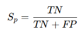 Specificity : 병이 없는 사람 중에서, 검사가 음성으로 정확히 판별하는 비율