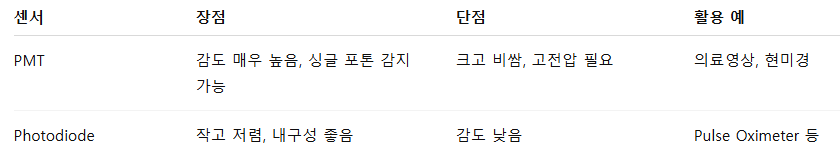 - 빛(광자)을 전자로 바꾸고, 연속적으로 증폭하여 아주 작은 빛도 감지 가능