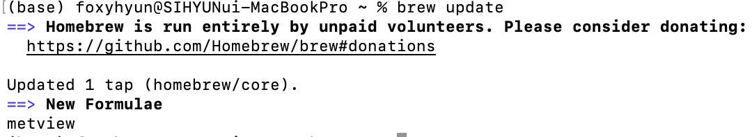 홈브류의 패키지 정보를 최신화하기 위해 업데이트를 진행합니다