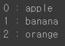 파이썬은 아이템의 인덱스와 값을 알고싶은 경우, enumerate 라는 기능을 제공한다.